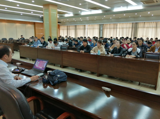 11月4日下午,76net必赢线路检测中心党委书记凤杰在学术会议中心二楼报告厅给学院全体党员讲授了一堂生动的“不忘初心、牢记使命”主题教育专题党课。