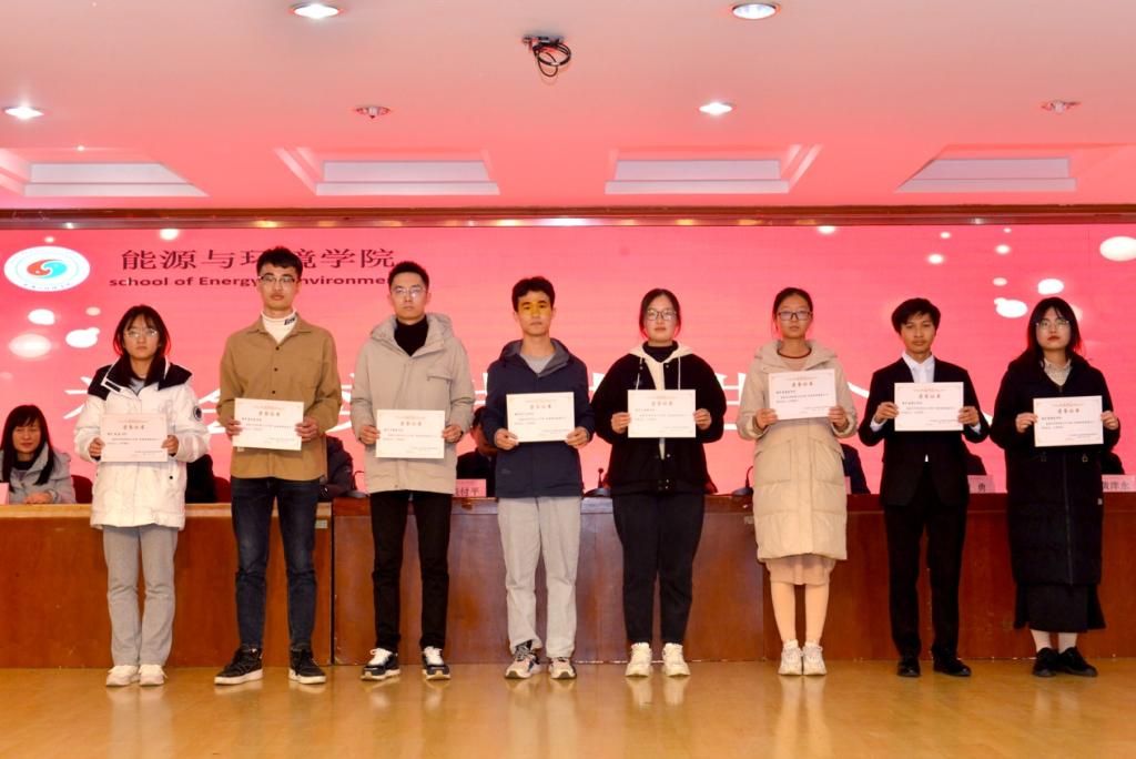 会上,钱付平院长宣读了2020至2021学年评奖评优表彰决定并向受到表彰的同学表示祝贺。学院先进班级代表、优秀学生代表及优秀班主任代表分别上台发言。大会为获得校、院先进班级、学院优秀班主任、特一二三等奖学金、能环学院“十佳之星”、校友奖助学金等获奖代表等17个大类奖项的先进集体、先进个人代表颁发奖和证书。