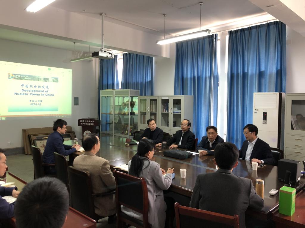 随后叶院士进行了题为《中国核电的发展—Development of Nuclear Power in China》的学术报告。他首先介绍了核电运行的成本及其与火力电站的对比情况,详细的介绍了核电发展的历史和AP1000、EPR和CAP1400机组的发展现状,图文并茂地介绍了第一代、第二代及第三代核电安全运行、废水、废渣处理方法;并针对核电发展进行了总结,提出了人工智能和大数据在核电方向的应用发展方向。叶院士的报告生动形象,深入浅出,获得了与会师生的热烈掌声。在提问环节中,叶院士与师生针对核电的设计和安全性等问题进行了深入的讨论,同时叶院士还结合福岛核电站及国内核电站实际,对提出的问题一一做了细致的回答。