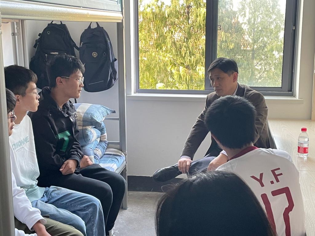 会后,全体教师走进宿舍与同学们进行了深入地交流,详细了解同学们的学习、生活和思想状况,为学生答疑解惑。老师和同学们聊家常,关心同学们的衣食住行,听取同学们学习规划,耐心解答他们对所学专业的疑虑,指导他们进行大学生涯规划。同学们与老师们敞开心扉,将自己在学习、生活上遇到的问题一一向老师们诉说。老师们一边认真聆听,一边记录下来,并对同学们一些疑惑进行了解答和说明。
