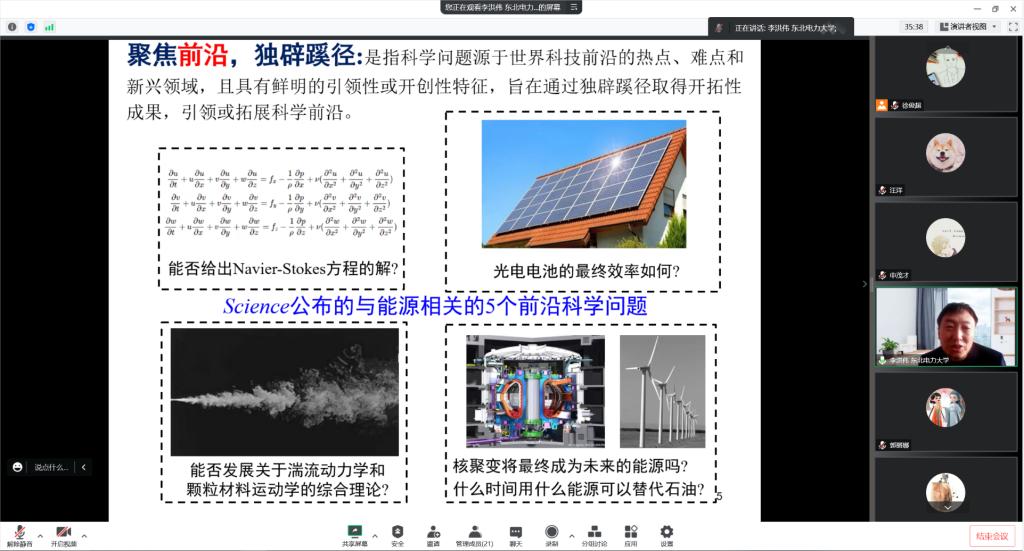 2022年12月28日上午,东北电力大学科技产业处副处长李洪伟教授应邀进行学术交流,为我校76net必赢线路检测中心教师作了题为“自然科学基金申报形势分析与探讨”的学术报告。报告通过腾讯会议举行,由76net必赢线路检测中心楚化强副院长主持,中国矿业大学国家杰青周怀春教授、科研处蔡征宇副处长出席了报告会,学院教师通过线上参加了报告会。