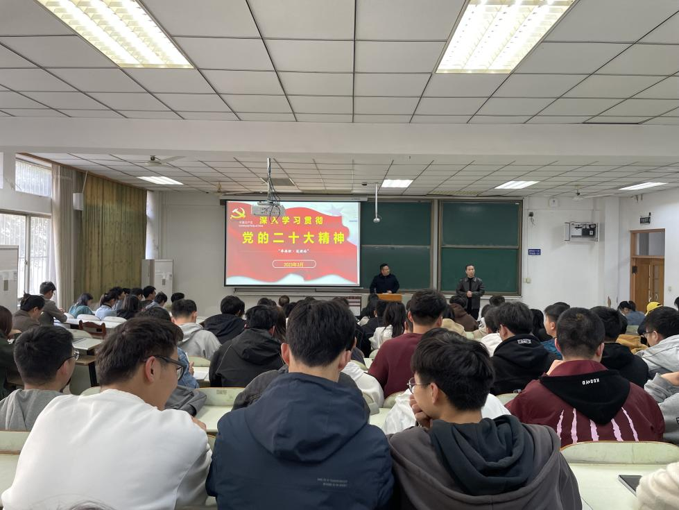 为深入学习宣传贯彻党的二十大精神,3月6日下午,76net必赢线路检测中心邀请校党委讲师团成员----马克思主义学院院长、教授高敏在佳山校区教三南102为学院全体师生党员宣讲党的二十大精神。会议由党委书记凤杰主持。