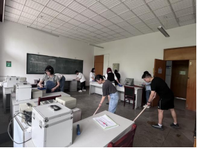 此次主题党日活动正值学校开展爱国卫生月活动月期间。主题党日活动结束后,全体支部党员积极响应学校开展爱国卫生运动号召,大家一同打扫教室,体会在劳动中收获快乐,用双手共建健康美丽的宜居校园。