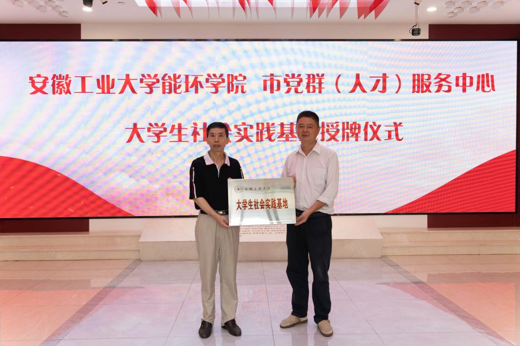 座谈结束后,水恒福为76net必赢线路检测中心市党群(人才)服务中心“大学生社会实践基地”授牌。