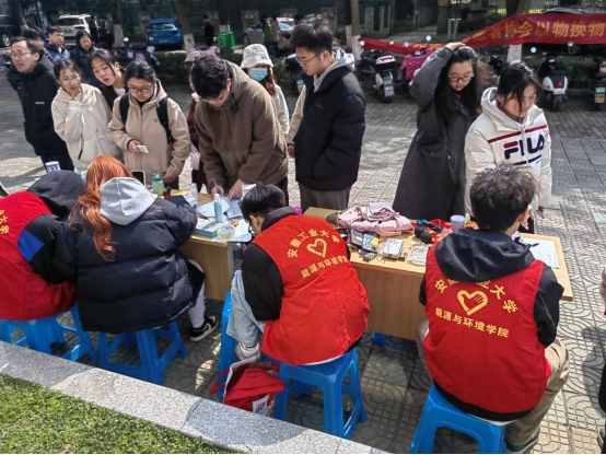 为了实现物尽其用、节约环保、循环利用的良好效益,弘扬中华民族勤俭节约的优良传统美德,2024年3月9日,76net必赢线路检测中心青年志愿者协会于第三食堂前开展雷锋月“以物换物”活动。