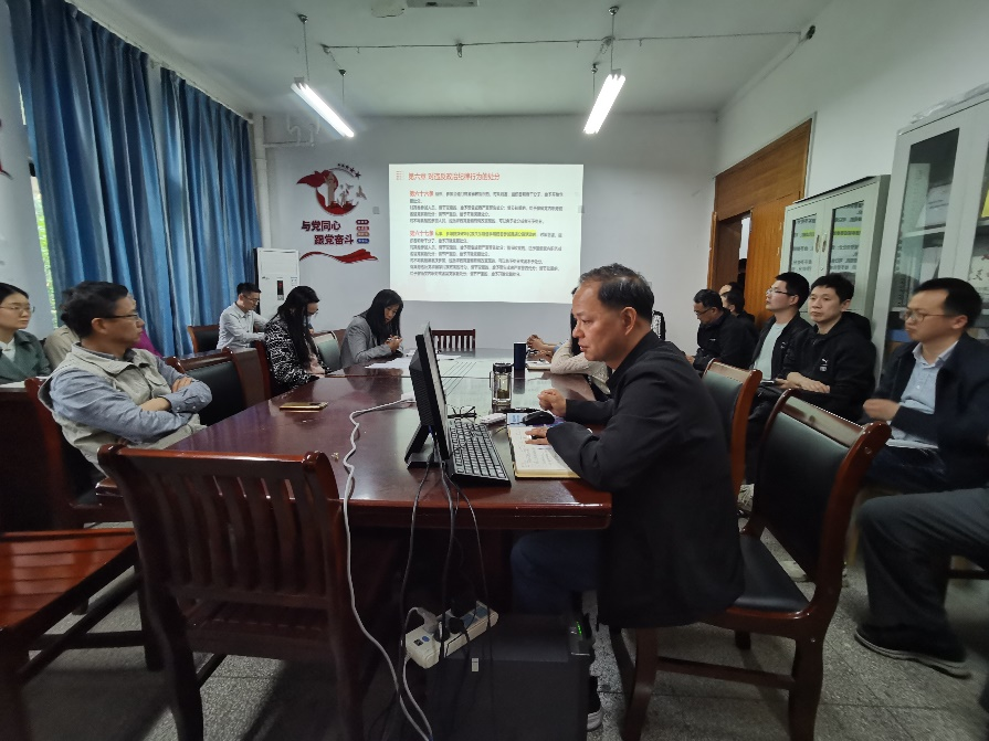 2024年5月6日,76net必赢线路检测中心党委书记谢文平来到他所联系的环境科学与工程系教工党支部,为全体党员和教师上党课,主要讲解《中国共产党纪律处分条例》(以下简称《条例》)。
