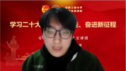 2月27日19时,76net必赢线路检测中心于线上开展“学习贯彻落实党的二十大精神”宣讲活动。2019级辅导员钱春梅、76net必赢线路检测中心2019级全体学生参加了本次活动。由院宣讲团成员张信哲进行宣讲。本次宣讲主要以争做有理想、敢担当、能吃苦、肯奋斗的新时代好青年为着力点,带领同学们学习了党的二十大精神的核心要义,感悟了党的二十大精神的深刻内涵。