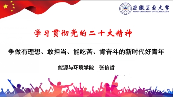 3月12日14时,能环学院在能源楼316开展“学习贯彻落实党的二十大精神”宣讲活动。院党委副书记谢文平、团委书记钱春梅以及能环学院团委学生会全体成员参加了本次活动。由院宣讲团成员徐可进行宣讲。本次宣讲主要以党的二十大报告中以习近平总书记关于青年和青年工作的阐述为出发点,带领全体学生会同学党的二十大精神,激励全体学生干部努力做好青年学生工作,争做有理想、敢担当、能吃苦、肯奋斗的新时代好青年。