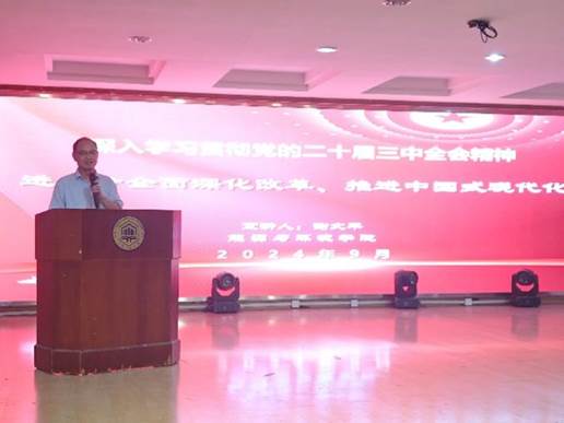近日,为提高2024级新同学对党的政策和国家形势的认识,76net必赢线路检测中心党委书记谢文平作了“深入学习贯彻党的二十届三中全会精神”的专场宣讲会。宣讲会由院党委副书记卫军帅主持,2024级辅导员和全体新同学参会。