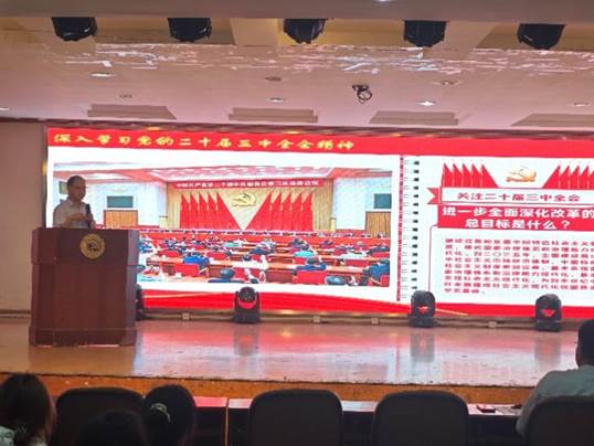 宣讲会上,谢文平首先对党的二十届三中全会的重要意义进行了详细解读。他强调,党的二十届三中全会高度评价了新时代以来全面深化改革的成功实践和伟大成就,研究部署了进一步全面深化改革、推进中国式现代化建设的一系列重大战略举措,全面系统地阐释了全面深化改革与中国式现代化的一系列重大关系,为如何实现中国式现代化提出了根本遵循。