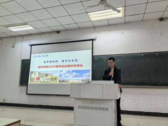 为进一步加强2025届毕业班学风建设,提升毕业生的综合素质和就业竞争力,为学生顺利毕业打好基础,能环学院于2024年10月16日在教三南103教师召开2025届毕业班学风建设专题会议。副院长卫军帅、盛广宏、毕业班辅导员黄乐远以及全体2025届毕业班学生参加了此次会议。