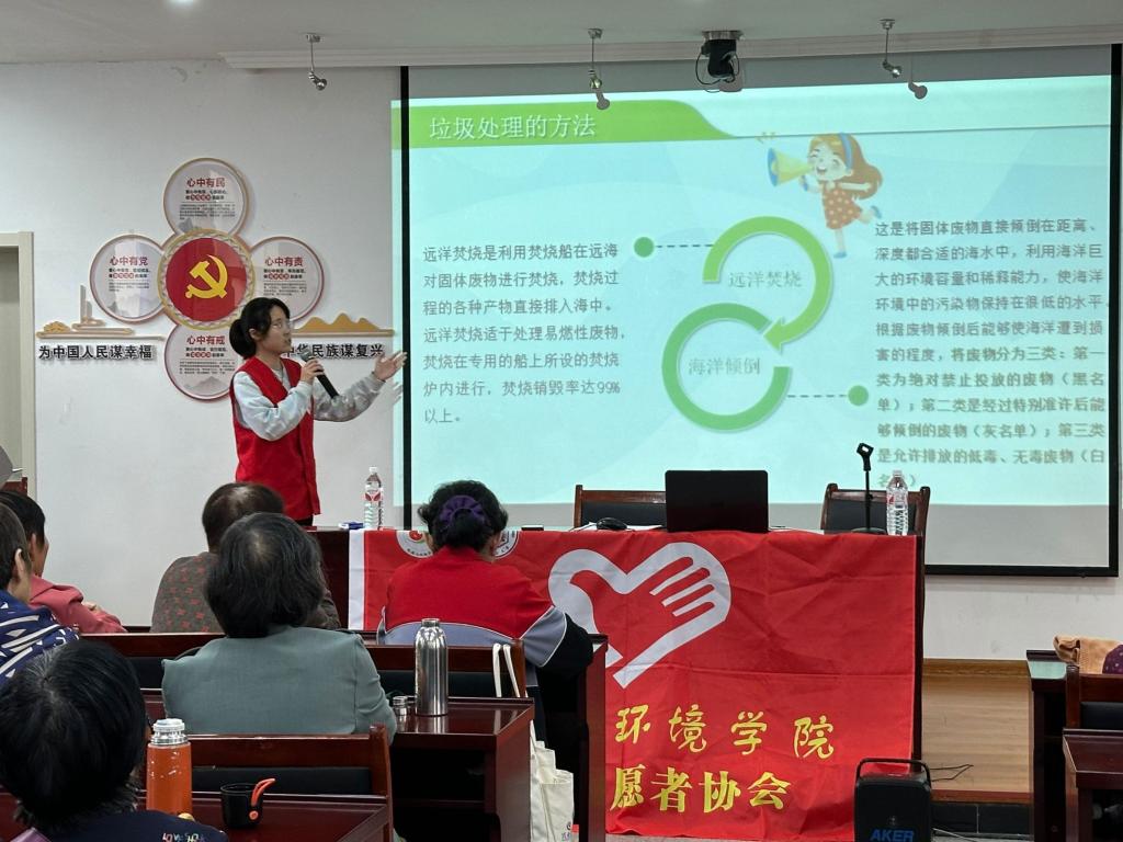在本次活动中,能环学院青年志愿者协会充分发挥专业优势,围绕“垃圾分类”、“低碳生活”、“节能减排”和“生态文明建设”等热点话题,与佳山社区的近30名老年人进行了亲切的交流与分享。活动在佳山社区党群服务中心活动室举行,志愿者们通过生动的讲解和互动问答,向老年人介绍了垃圾分类的重要性和具体方法,帮助他们理解如何通过日常行为减少环境污染。通过分享低碳生活的理念,鼓励老年人在日常生活中采取节能减排的措施,如节约用水、用电,减少一次性塑料制品的使用等。志愿者们还就生态文明建设和长辈们进行了讨论,阐释了环境保护与经济发展的平衡,以及每个人在其中扮演的角色。活动现场氛围和谐融洽,志愿者们用真心传达着对老年人的关爱,陪伴他们度过一个个美好的午后时光。