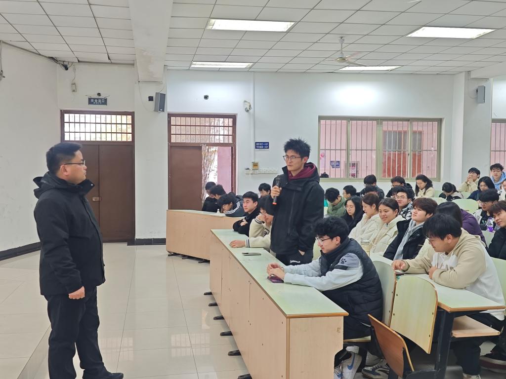 会上,卫军帅首先通过生动的网络新媒体资源,向同学们展示了因不文明行为引发的严重后果。他结合近年来高校和社会上的典型案例,深入剖析了不文明行为的危害性,强调了文明礼仪和纪律规范在个人成长和社会发展中的重要性。卫军帅指出,文明行为不仅体现了个人的素质和修养,更是构建和谐校园和社会的基础。随后,卫军帅带领全体学生认真学习了《高等学校学生行为准则》。他详细解读了准则中的各项要求,并结合实际生活场景,向同学们阐述了如何在学习、生活和社交中践行文明行为、遵守纪律规范。卫军帅强调,作为新时代大学生,同学们要时刻以高标准要求自己,做到言行一致、表里如一,努力成为德才兼备的优秀人才。