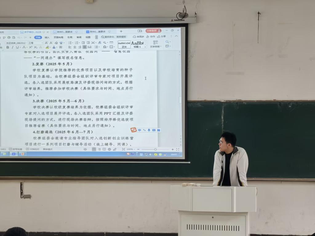 范浩东也结合自身参与“红色筑梦之旅”赛道的参赛经验和同学们做了分享。他呼吁同学们积极备赛,将专业学习与创新实践相结合。此次会议也是学院打造“八好之家”之“学风好”的具体举措。会议帮助新生明晰了参赛路径,更营造了“以赛促学、以赛促创”的浓厚氛围。