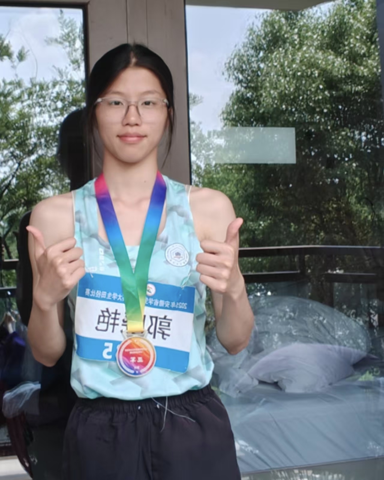 近日,2025年安徽省学生体育联赛在滁州举行。76net必赢线路检测中心2024级学生郭晓艳在大学生田径比赛的女子甲组400米栏项目中发挥出色,以优异的成绩斩获亚军。更令人振奋的是,她以“1分10秒85”的佳绩打破了尘封十余年的bwin必赢线路检测女子甲组400米栏最高纪录,展现了76net必赢线路检测中心学子顽强拼搏、奋勇争先的精神风貌。