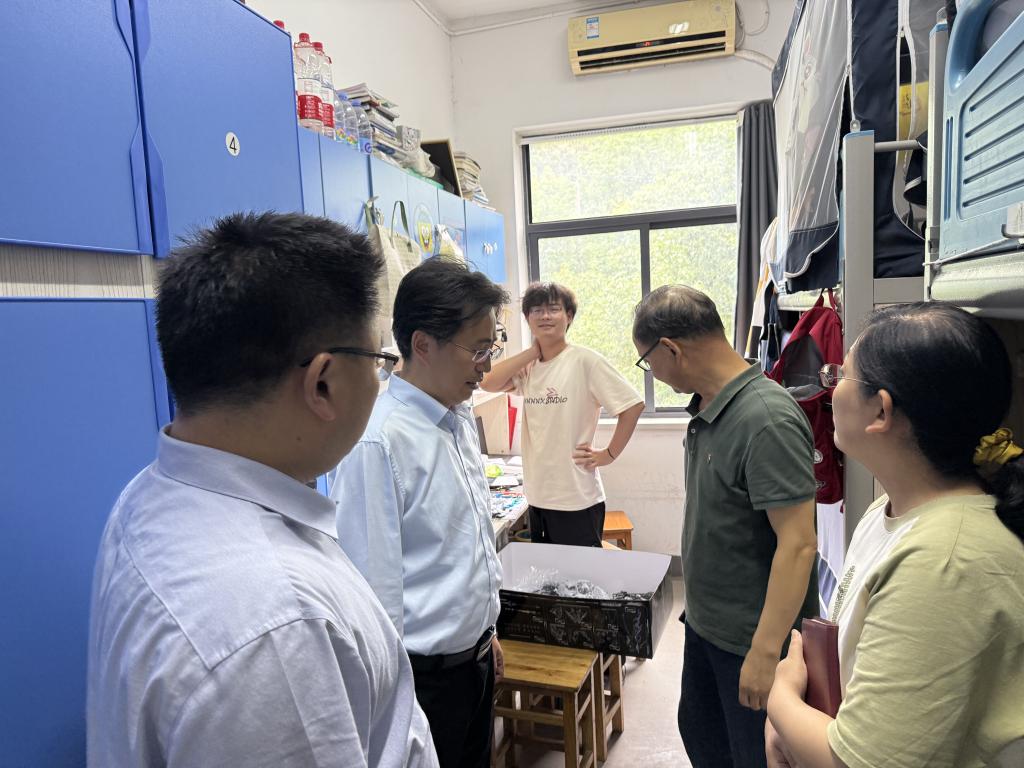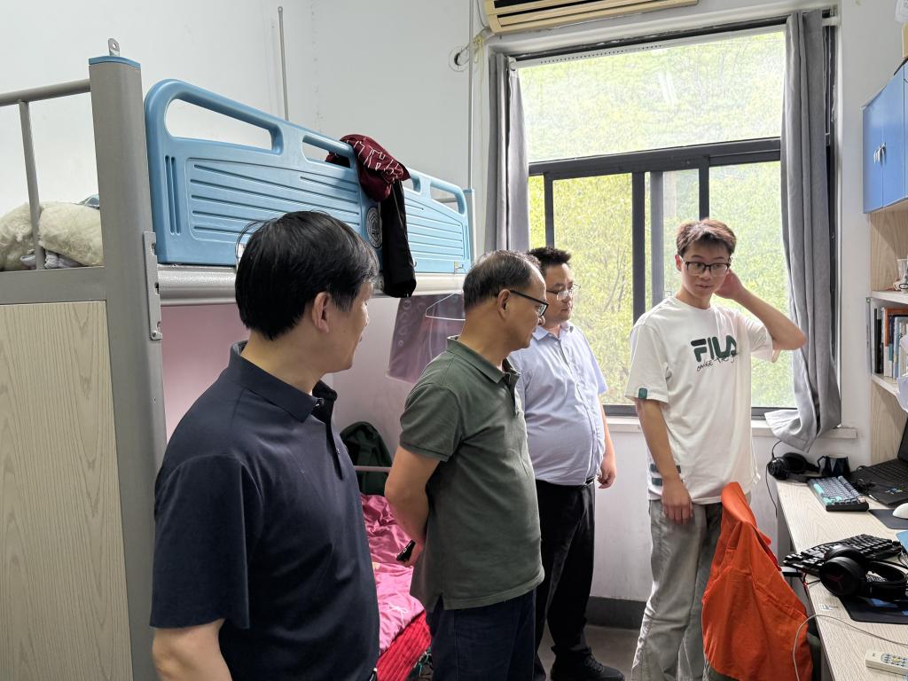 走访过程中,学院领导与学生进行了亲切的交流,详细了解了同学们的日常生活、学习情况以及面临的困难。领导班子成员逐一查看了宿舍环境,仔细询问了同学们的饮食、作息、心理健康等情况,并耐心倾听同学们的意见和建议。学院党委书记谢文平表示,学院始终把学生的成长与发展放在首位,希望通过这样的活动,能够真正了解同学们的需求,帮助他们解决实际问题,营造一个温馨、和谐的学习生活环境。学院还鼓励同学们积极发挥主人翁精神,主动参与宿舍文化建设,共同营造积极向上的宿舍氛围。