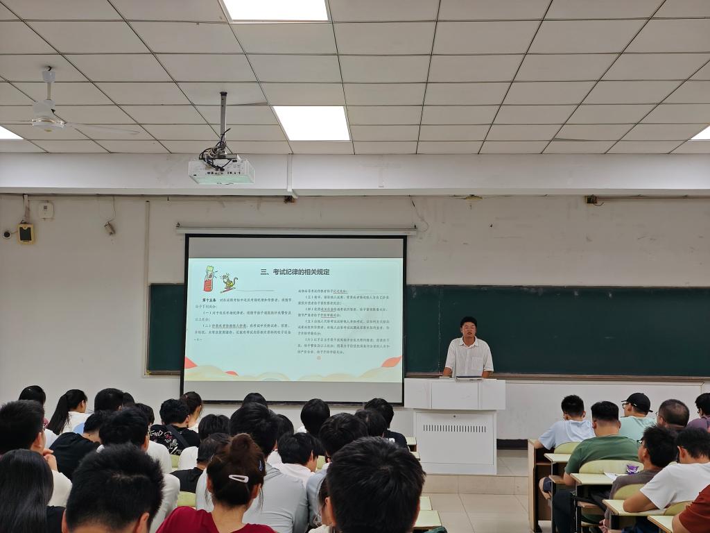为加强对学生过程管理,持续优化日常教育和管理和学风建设,为新学年各项工作开好头、起好步,9月1日下午,76net必赢线路检测中心于教三南103教室组织召开2024级学生新学年年级会。会议由辅导员吴飞、范浩东共同主持,2024级全体学生参会。