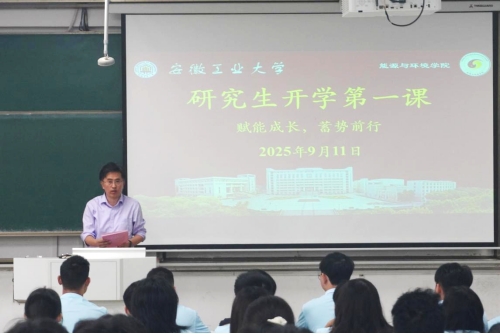 随后,楚化强以“赋能成长、蓄势前行”为我院2025级研究生新生上开学第一课。他分别从校院发展、我院教师队伍及科研平台和方向等方面进行了详细介绍,并期望所有研究生积极转换身份、合理做好学习规划、主动迎接挑战,助力我国早日达成“双碳”目标实现人类生态文明建设。