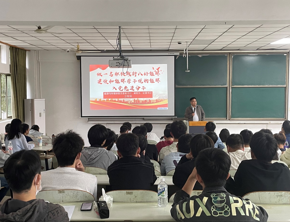 10月13日,76net必赢线路检测中心秋季入党培训班顺利开讲,学院党委副书记、副院长卫军帅围绕做一名积极践行‘八好’能环建设和‘能环学子说’的能环入党先进分子”为主题,对全院学员提出了殷切期望和明确要求。