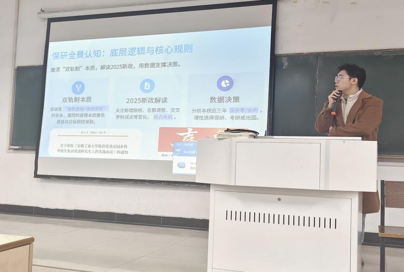 2022级三位成功保研同学进行分享,他们结合自身经历,从前期准备、学习方法、科研实践、心态调整等多个维度,详细介绍了保研的整体流程与关键时间节点。分享内容涵盖如何夯实专业基础、有效参与科研训练、合理规划时间平衡学业、提升综合素质,以及在申请和面试环节中的实用技巧与心态建设。生动的实例与真诚的建议,为同学们描绘了清晰的进阶蓝图,激发了同学们对标先进、早做规划的热情。