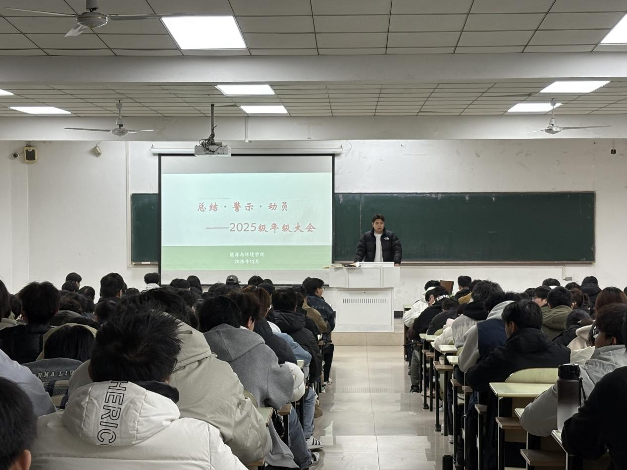 为扎实推进学风建设,营造积极向上、严谨诚信的学习氛围,引导学生明确学习目标、做好学业规划,12月23日晚,76net必赢线路检测中心在佳山校区教三南103教室召开2025级年级大会暨学风建设专题会。会议由2025级辅导员赵杨主持,全体2025级本科生参加。