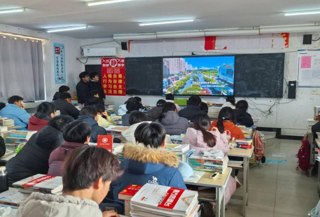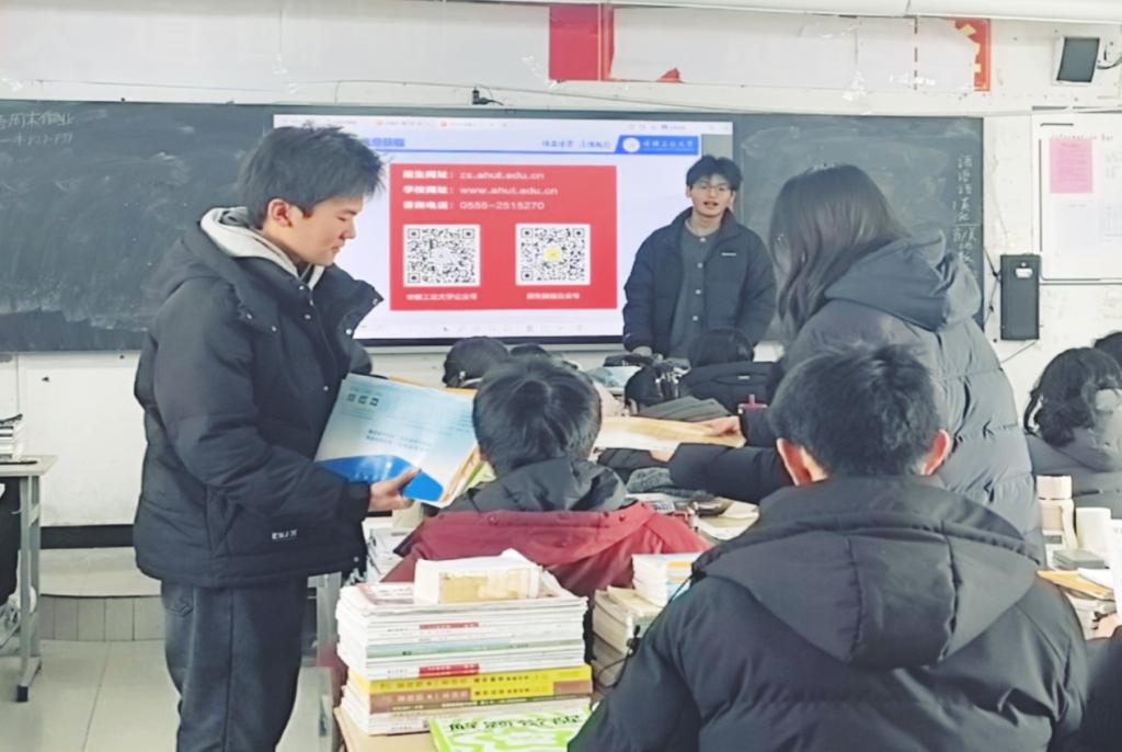 灵璧一中作为皖北地区基础教育的典范,多年来为高校输送了大批优秀生源。宣讲会尚未正式开始,教室内已座无虚席,高三学子们目光灼灼,满怀对未来的好奇与期待。不同于以往严肃传统的宣讲形式,安工大学子们以轻松幽默的口吻,将校园生活、专业学习、成长经历娓娓道来。从佳山湖畔的晨读剪影,到实验室里的创新时刻;从食堂热气腾腾的人间烟火,到社团文化节的多元碰撞——一幅幅鲜活的大学图景,在学弟学妹们眼前徐徐铺展。